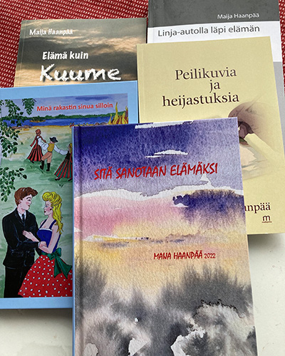 Oliivinvihreä reppu (2018) on tähän saakka ainoa julkaisemani teokseni. Se sai alkunsa kun asuin mieheni kanssa Wienissä 2006-2009 ja ystävystyin Pepekin, lapsena holokaustin kokeneen juutalaisen kanssa. Olin aikaisemmin aikaisemmin ihaillut Itävaltaa johon olin jo pikkutyttönä saanut kosketuksen Helsingin naapuriemme kautta.