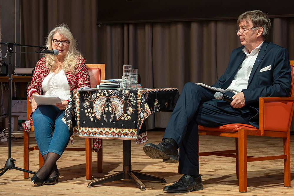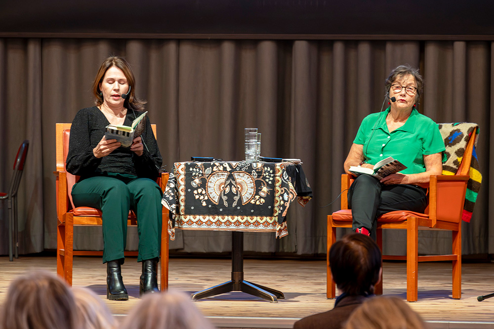 Tiina Laitila Kävlemark kertoi juuri ilmestyneestä neljännestä romaanistaan Valon ja pimeän sonaatit. Myös Pirjo Marjut Vega-Brandtin Kolumbiaan sijoittuva romaani Valkohaikara julkaistiin äskettäin. Se on hänen neljäs kirjansa. Leenamaija Forsberg-Johannesson puhui keväällä Kaisa Vilhuinen -kirjallisuuspalkinnon voittaneesta esikoisestaan, novellikokoelmasta Tähdenlento. |