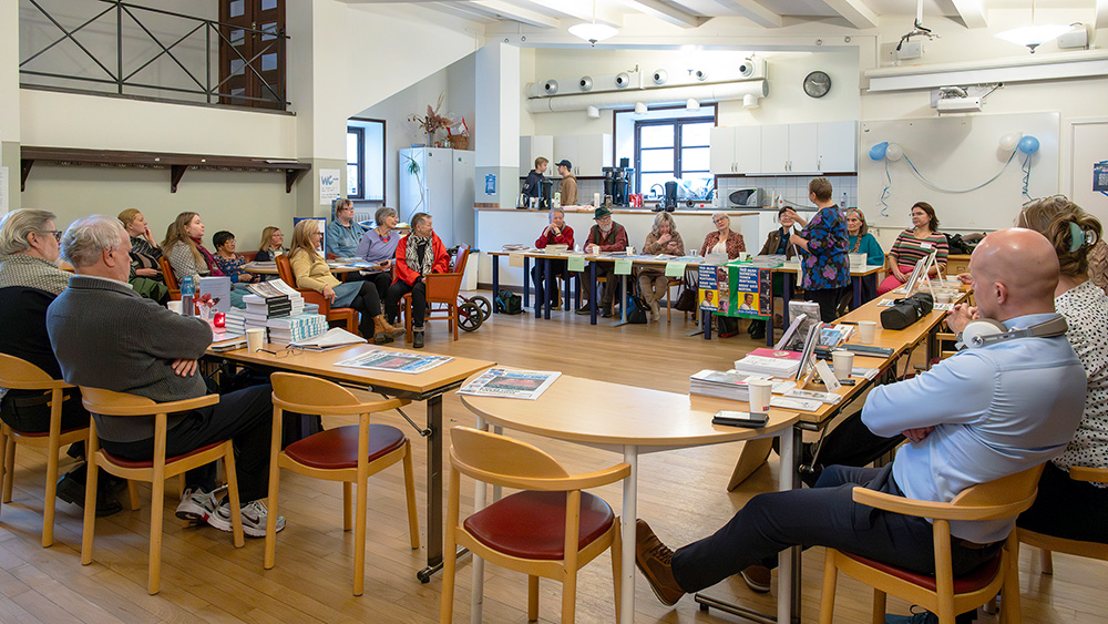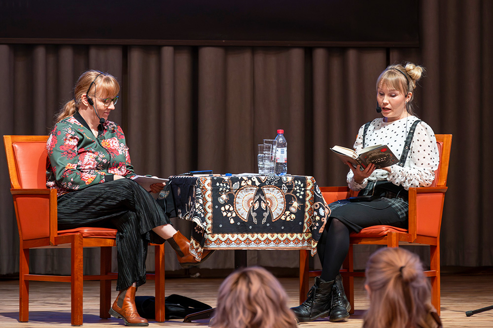 Kirjailijahaatattelut juhlasalissa