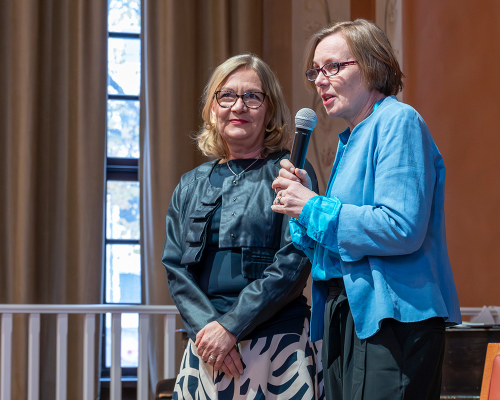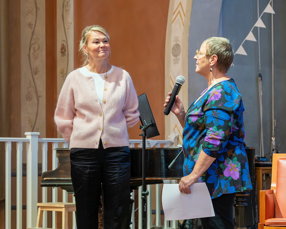 | Messut avasi Kulttuuri.se:n puheenjohtaja Maarit Turtiainen ja Tukholman ruotsinsuomalaisen koulun terveiset esitti apulaisrehtori Maarit Beijar. |