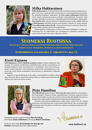 Lauantaina 9.11. Tukholman ruotsinsuomalaisella koululla oli koossa hyvät ainekset: mieleenpainuva juhlapuhe, mielenkiintoisia haastatteluja, innostunutta yleisöä, kiintoisia esitelmiä, tyytyväisiä kävijöitä, vino pino räppejä kirjoittavia nuoria ja musiikin taitajia, kirjamyyntiä, karjalanpiirakoita, messuhulinaa ja talo täynnä kulttuurista kiinnostuneita ihmisiä.