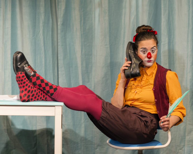 Lapsille puuhahuoneen ja lukunurkan lisäksi on tarjolla runsaasti pantomiimia sisältävä näytelmä, jossa ihmetellään miten Veera-klovni pärjää konttorihommissa.